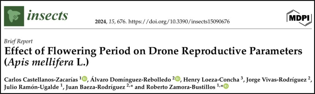 La disponibilidad de alimento durante el desarrollo larval es clave para la reproducción de las abejas. En este estudio se evaluó cómo la escasez floral y el inicio de la floración afectan la capacidad reproductiva y la calidad del esperma de zánganos (Apis mellifera). Los resultados mostraron que los zánganos criados durante el inicio de la floración presentaron una mayor proporción de eversiones del aparato copulador y de eyaculación, así como mejores parámetros espermáticos (volumen, concentración, motilidad, viabilidad e integridad celular), en comparación con aquellos desarrollados durante la escasez floral. Estos hallazgos indican que la falta de recursos florales afecta negativamente la reproducción de los zánganos y puede comprometer el éxito reproductivo de las colonias.